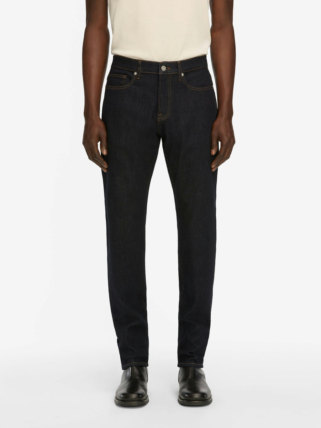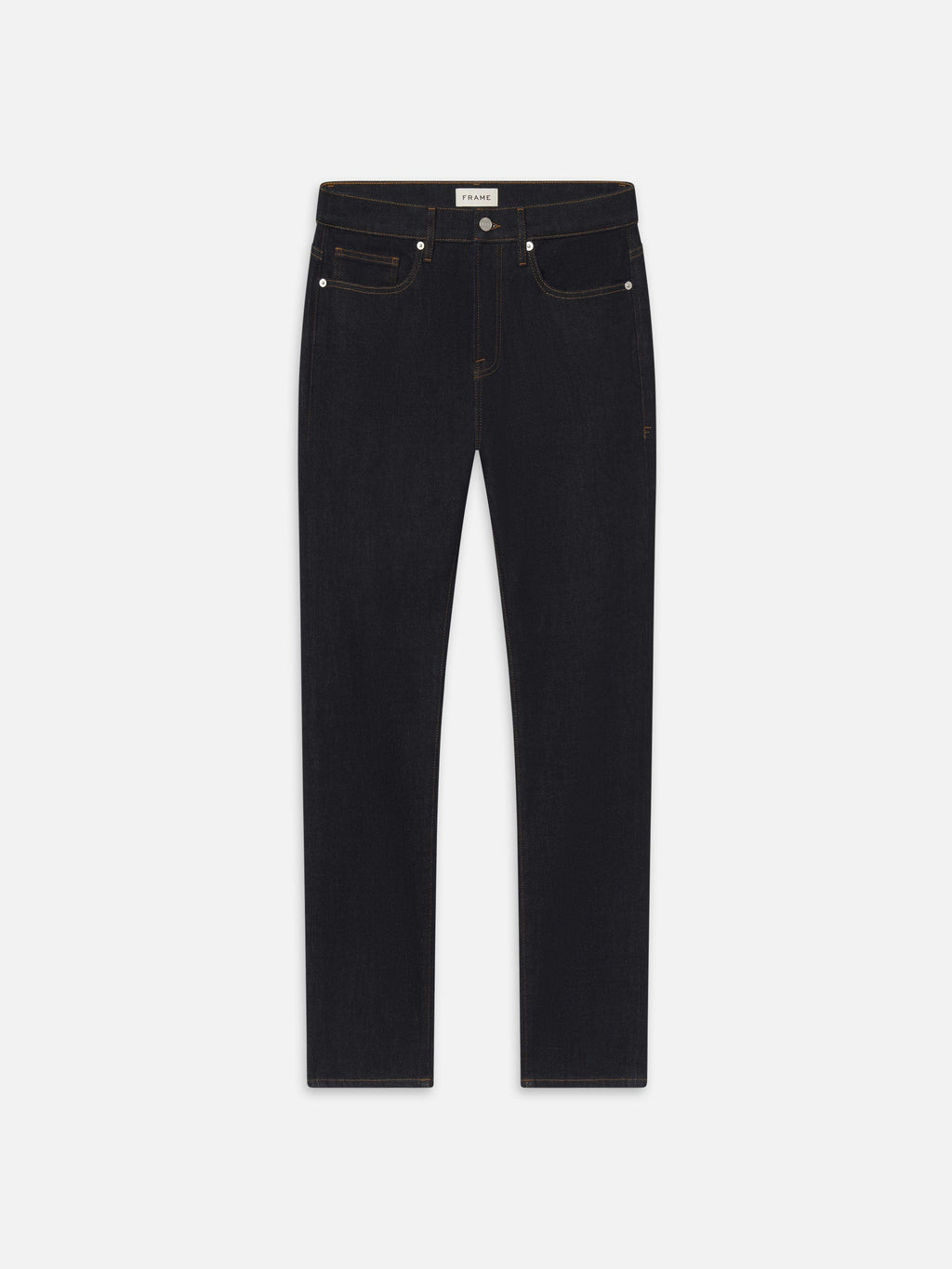 The FRAME signature slim straight leg fit, cut from responsibly washed premium denim. Featuring classic 5-pocket construction, substantial weight with a little stretch, a comfortable mid-rise waist, and a slim straight leg with slight tapering to the cuff.