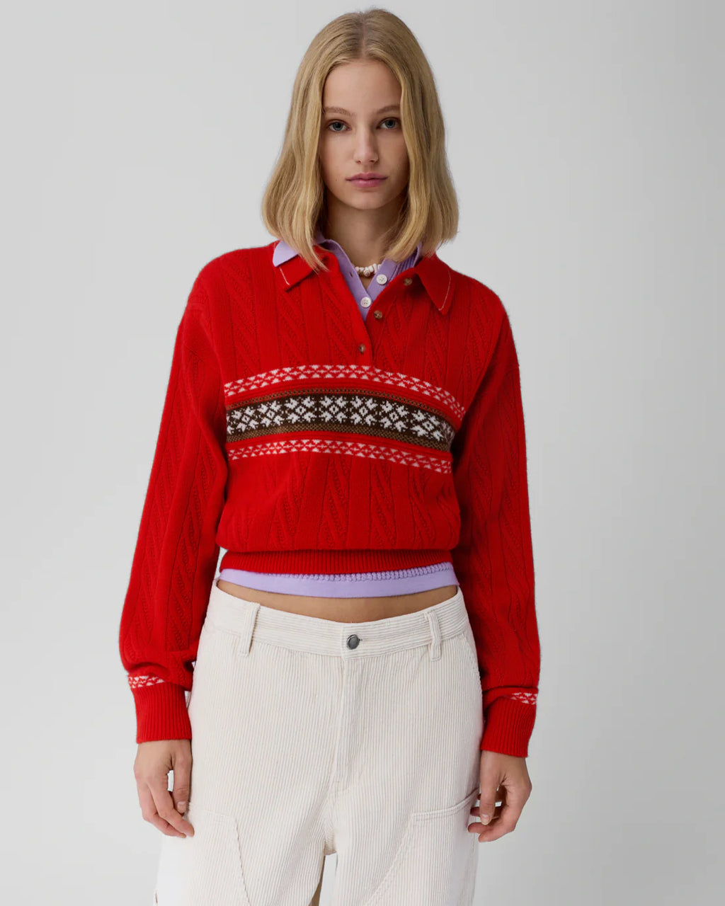 - MID-WEIGHT CABLE FAIRISLE POLO