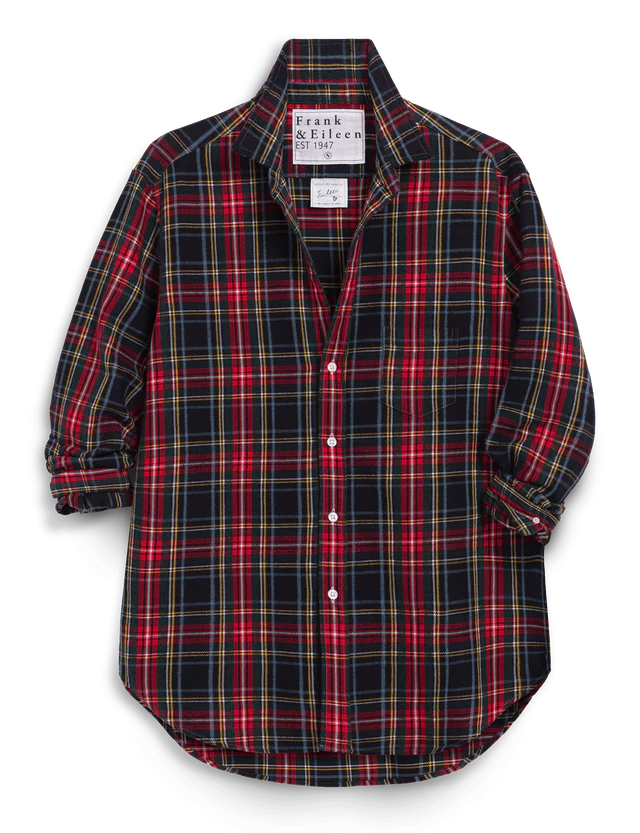 - Signature bust flattering button placement and long sleeves with button cuffs