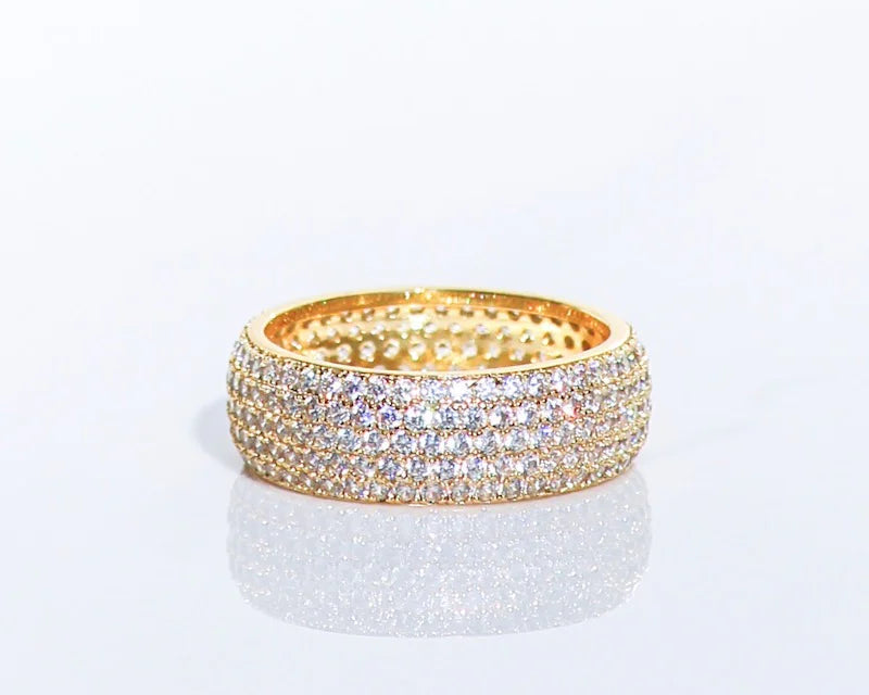 This elegant cigar-style ring is crafted from 14K gold vermeil and sterling silver and adorned with cubic zirconia. Its delicate beauty adds a unique touch to any look.