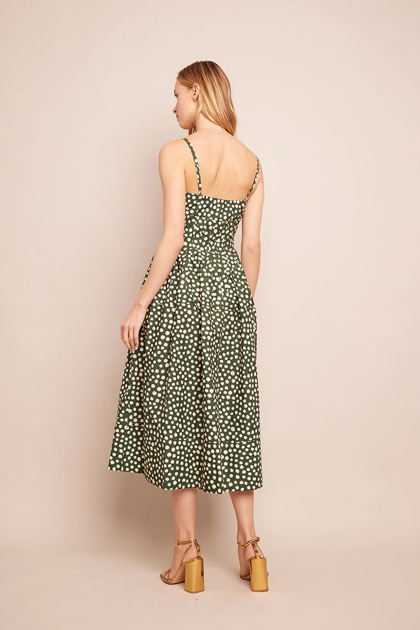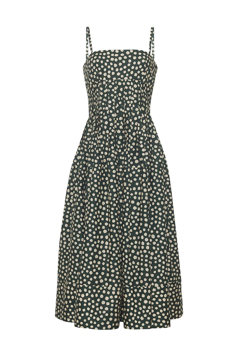 • Square neck midi dress with a fitted bodice and adjustable spaghetti straps