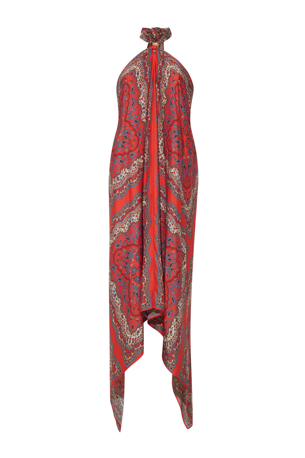 • Self neckties pulled through center front keyhole with a gold metal bangle at center front