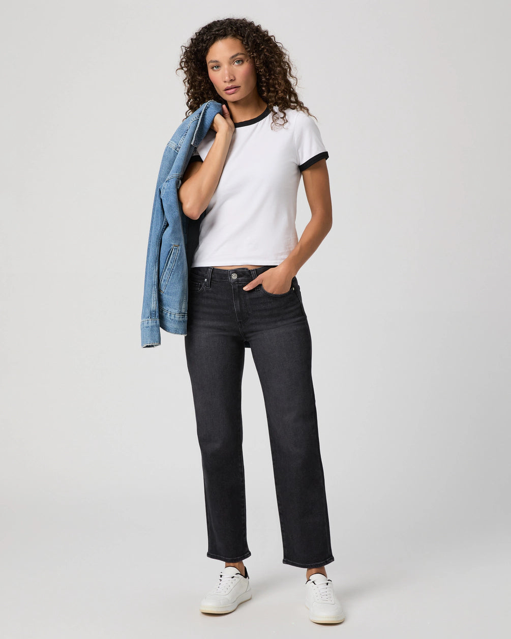 The Mason Ankle is our mid-rise straight leg with an ankle length inseam. Cut from our TRANSCEND VINTAGE denim in an ink black wash with subtle fading and whiskers, this pair combines the signature comfort of Transcend with rich denim character for a lived-in look.