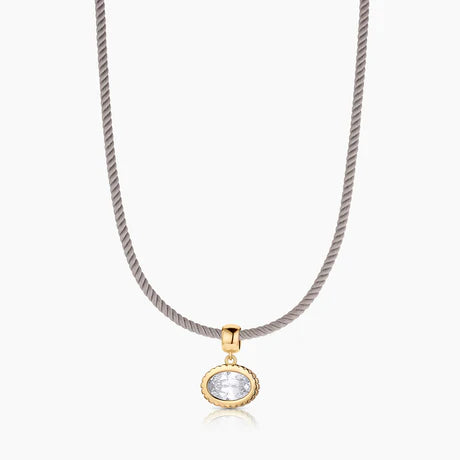 THATCH takes on a fresh new shape with Nova, a ridged ovular CZ charm that's equally luxe and eye-catching. We especially love her on our Ora Choker for an elevated evening look.