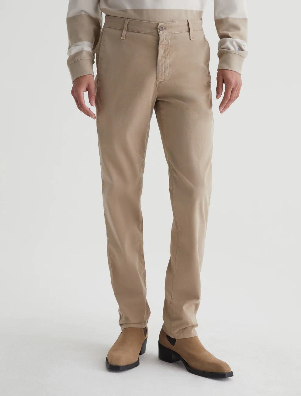 Kullen is a slim trouser crafted from 7.9 oz. Sorrento Stretch Twill, a refined Italian fabric in a classic khaki shade. These slim-cut men's pants feature on-seam pockets for a streamlined aesthetic. Welt pockets at the back complete the look.