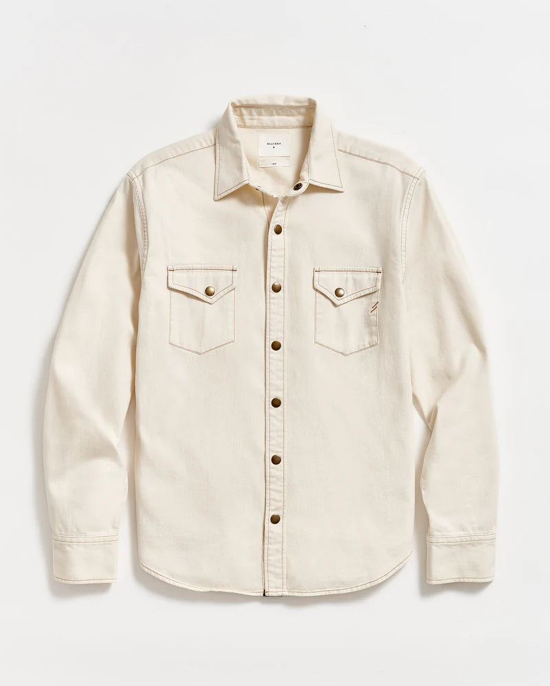 The Shoals Denim Shirt has been a mainstay in our collection for over two decades. Our twill version of this timeless classic is woven from beautiful organic cotton and designed with our signature spade pockets with an angled flap, denim-inspired fully felled seams, a bias yoke, a straight collar, and beautiful antique brass snaps. It feels familiar and broken in right off the rack, and it will only get better with time.