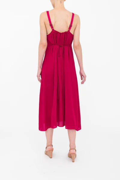 ELAINE KIM SILK STRAP MIDI DRESS WITH GROSGRAIN TRIM