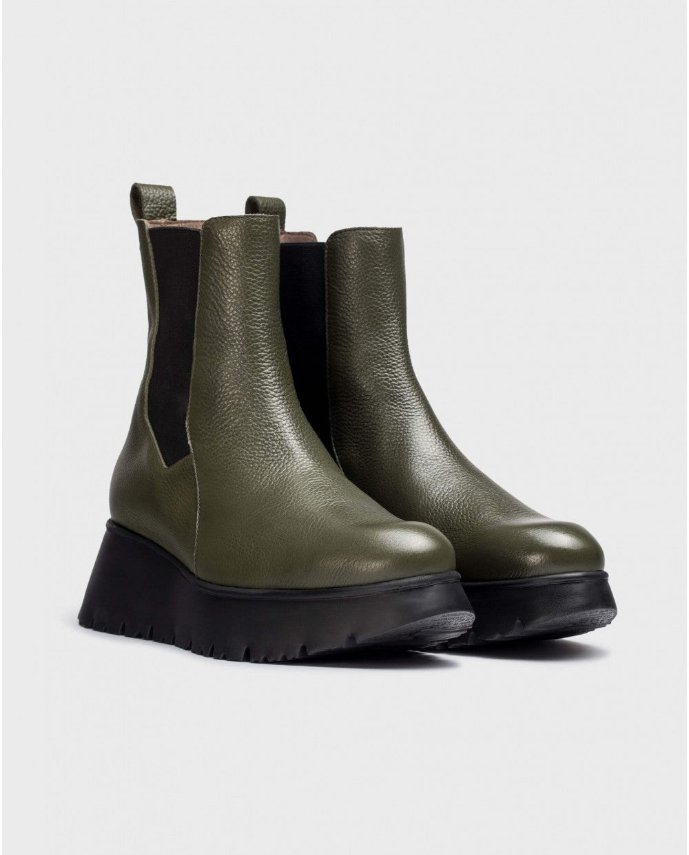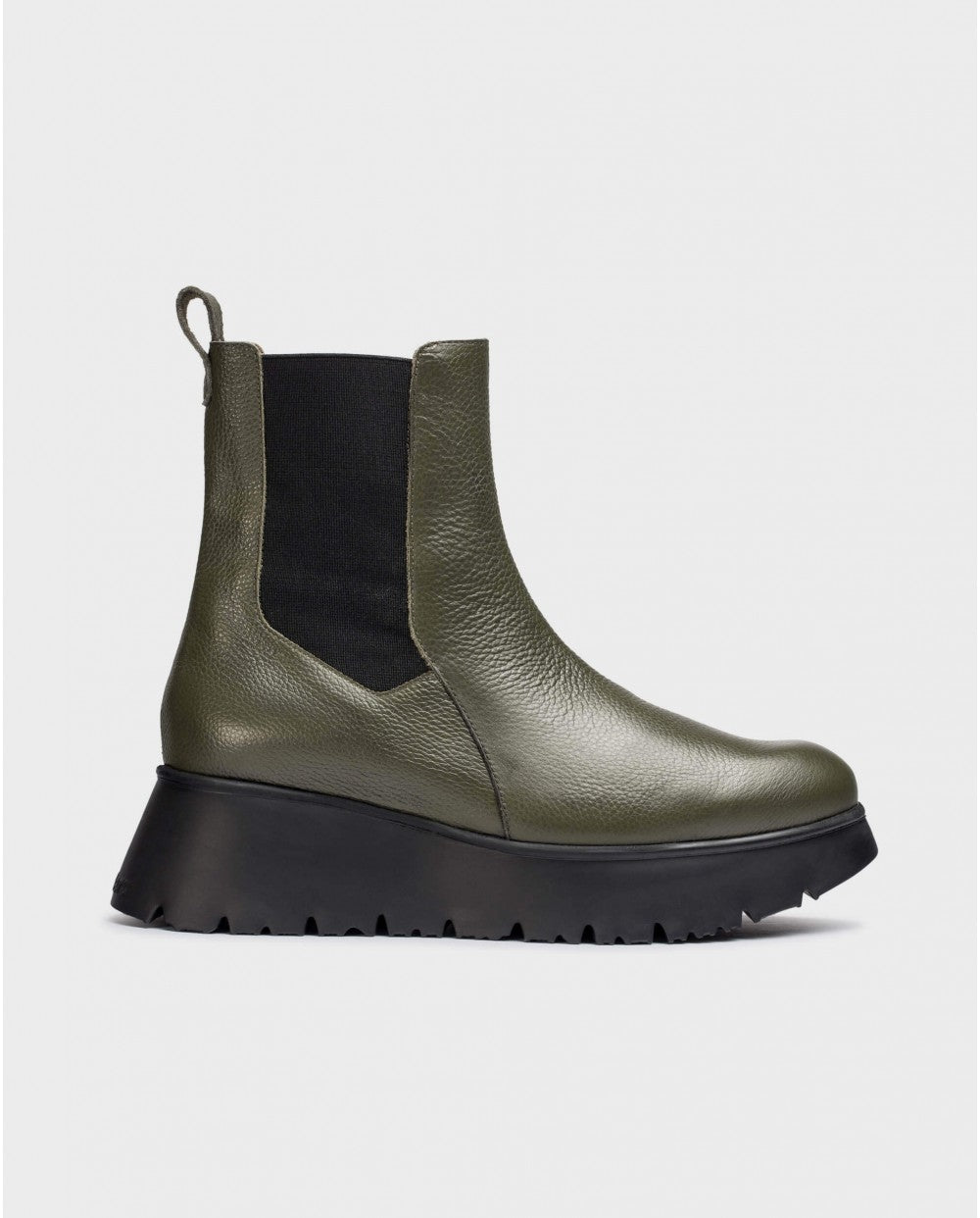 Green textured leather MARBELLA ankle boot. This Versatile and comfortable model is made in Spain. It´s inspired by the classic Chelsea boot, with side elastic panels and a back pull tab for a perfect fit. In addition, its platform developed, using WondersFly™ technology, guarantees lightness and comfort. Its MemoryGel insole ensures the perfect union between quality and comfort!! Get ready for the sensation!! #yeswefly!! Wonders supports responsible manufacturing via LEATHERWORKINGGROUP