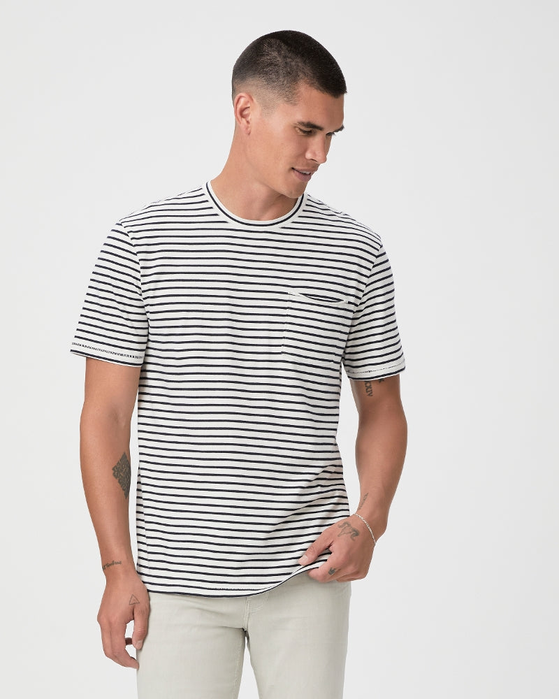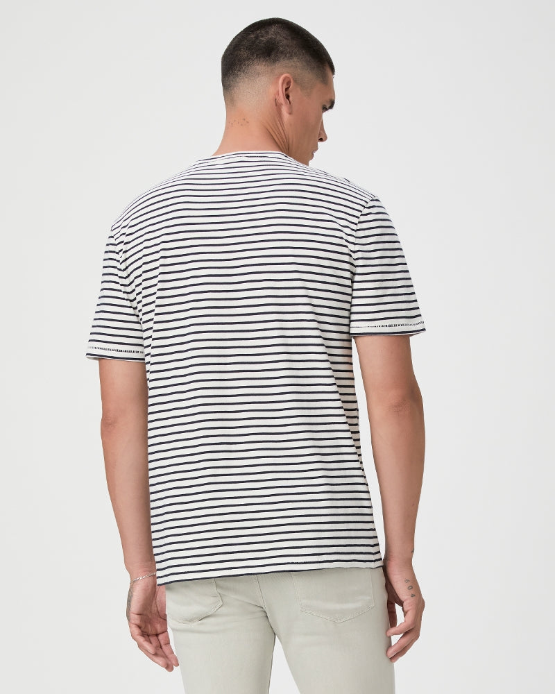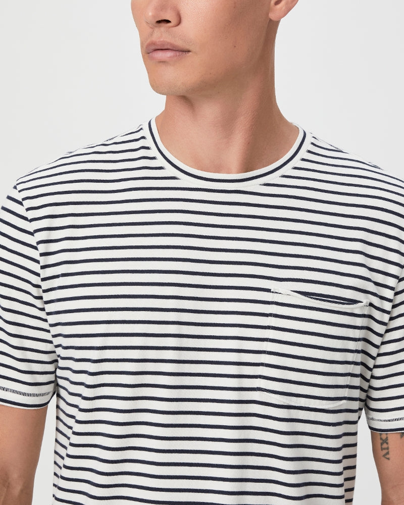 Made from supremely soft 100% cotton with slight stretch and a vintage tee feel, this crew neck tee features a raw edge chest pocket, a slightly curved hem and a center back seam detail. The Ramirez Tee comes in a marine blue shade and has been pigment washed for a unique look with highs and lows. Wear it on its own or layered under your favorite jacket for an easy weekend outfit.