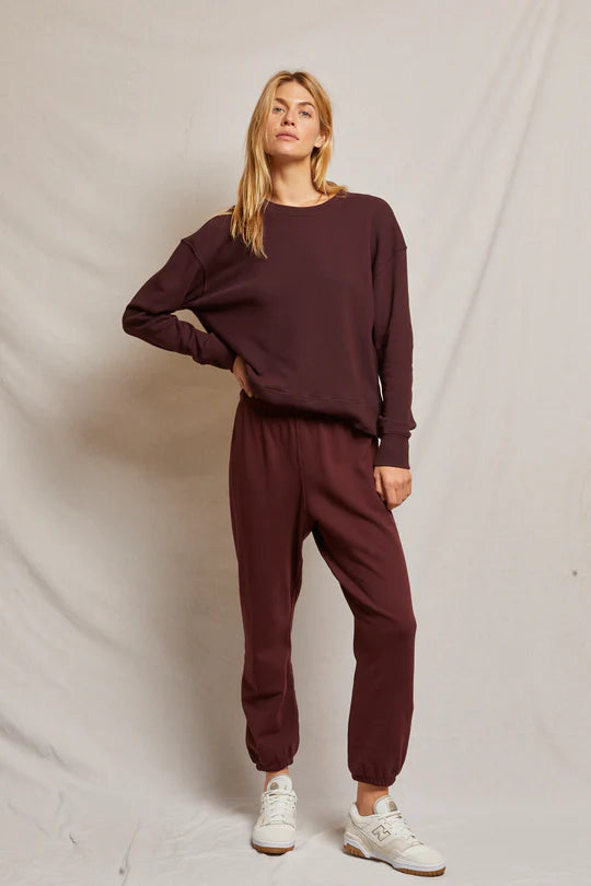 our newest jogger cut in signature french terry. toni is our most polished and refined jogger with a relaxed straight leg, clean finished waistband and a cinched leg opening. pair with the iggy hoodie