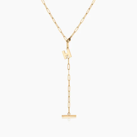 A personal touch in a sleek and modern initial charm, interchangeably clasped onto our Natalie Lariat—A combination that features a minimalist design that can be worn at any length for a customizable look. Add more Be You Initial Charms to layer or swap.