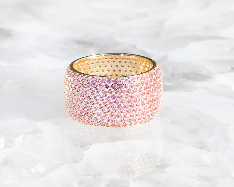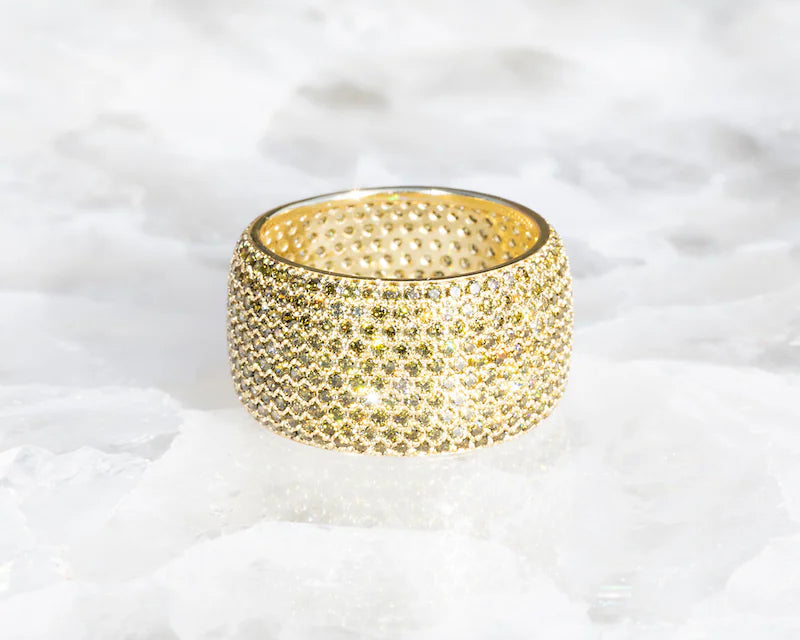 A cigar-style ring made from 14K gold vermeil delicate cubic zirconia.